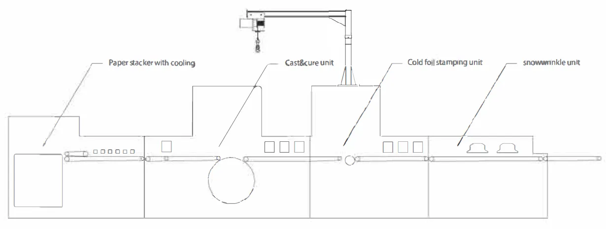هم به صورت تک‌دستگاه و هم ترکیبی با کارایی بالا، برای دستیابی به فویل‌کوبی سرد (Cold Foil)، میکروامباس هولوگرام (Cast &Cure)، پوشش‌دهی یووی، دانه برفی(Snowflake) و سایر جلوه‌های ویژه ترکیبی چند فرآیندی، تکمیل یکباره تولید پردازش پس از چاپ.