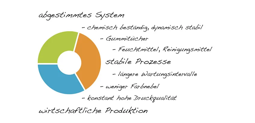 بدون شک، کمپانی Boettcher در زمینه چاپ افست در جایگاه تخصصی قرار دارد و این جایگاه با رویکردی سیستماتیک و متکی بر تجربه و دانش، اثبات شده است. انواع نورد، ملزومات جانبی و مواد شیمیایی تخصصی چاپ—هر گروه محصول بالاترین استانداردهای کیفیت را تأمین میکنند اما زمانی که این اجزا بهطور هماهنگ و در قالب یک سیستم یکپارچه به کار گرفته شوند، کیفیتی پایدار و عالی بهدست میآید؛ کیفیتی که تنها زمانی ممکن است که تمامی اجزا با دقت کامل با یکدیگر متناسب و سازگار باشند.