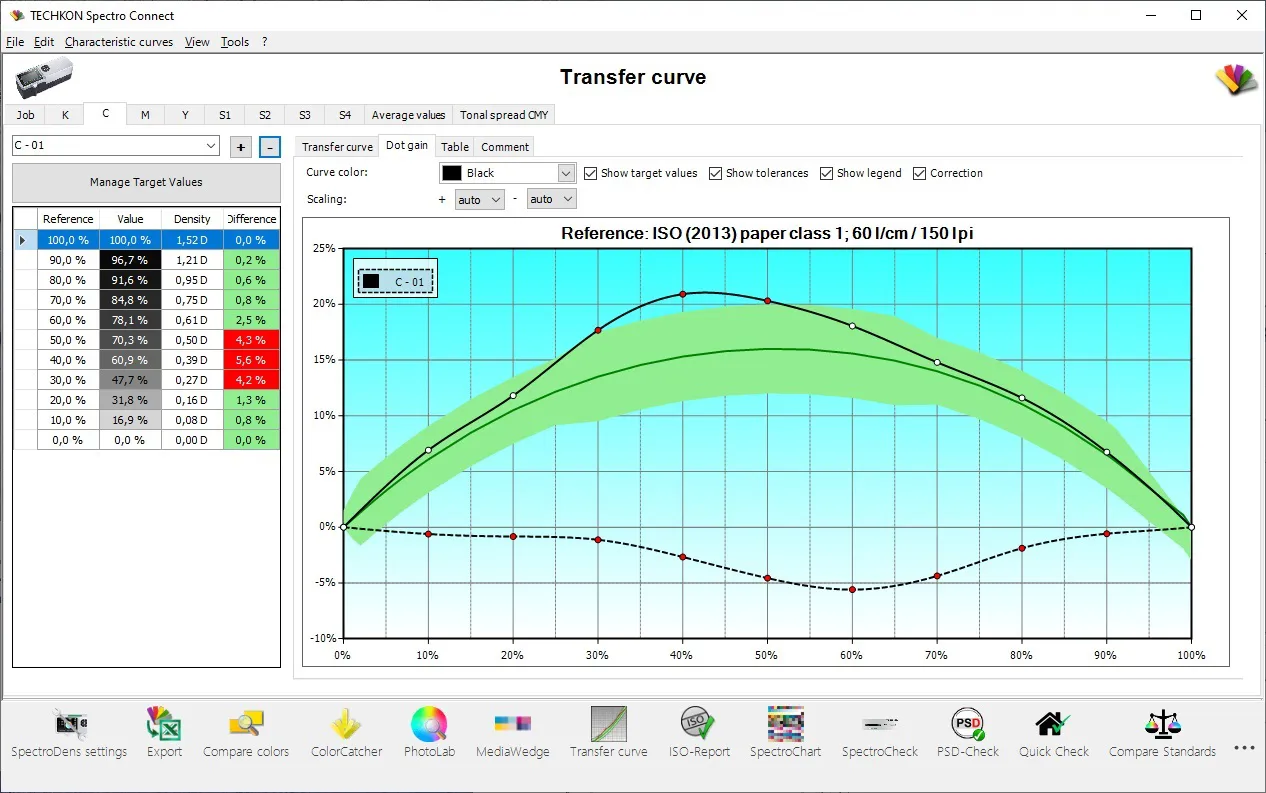 این برنامه همچنین برای کنترل از راه دور دستگاه برای تنظیمات، قفل کردن عملکردها، انجام بهروزرسانیها و ذخیره محتوای نمایش برای اهداف مستندسازی استفاده میشود. علاوه بر این، TECHKON SpectroConnect تبادل سریع و آسان کتابخانههای رنگی دیجیتال و همچنین مراجع و نمونههای اندازهگیری شده را ارائه میدهد. همچنین امکان وارد و صادر کردن دادههای رنگی با فرمت استاندارد CxF وجود دارد.