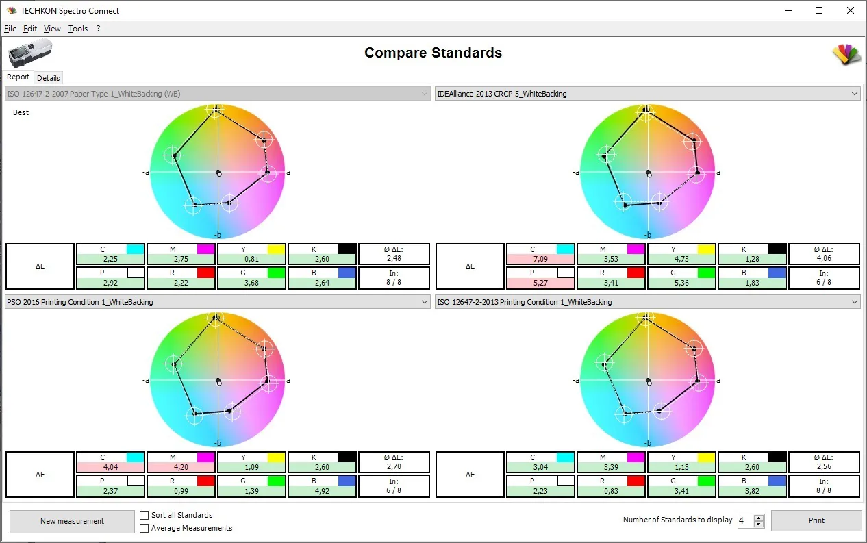تقریباً همه ماژولها دارای عملکرد گزارش و چاپ برای مستندسازی نتایج هستند. با ماژولهای مشخصه، دادهها میتوانند با فرمت Harlequin یا ISO 18620 خروجی گرفته شوند و بنابراین به همه RIP های مدرن وارد شوند.