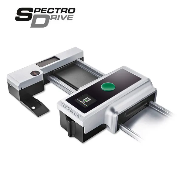 این سیستم از دو جزء تشکیل شده است: سیستم اندازهگیری موتوری، کل نوار کنترلی رنگ روی یک ورق چاپ شده را در عرض چند ثانیه اسکن میکند و همزمان دادههای اندازهگیری طیفی را به صورت بیسیم به رایانه شخصی ارسال میکند که در آن تمام اطلاعات مربوط به کنترل چاپخانه نمایش داده میشود. یکی از ویژگیهای منحصر به فرد SpectroDrive، انعطافپذیری آن برای استفاده با هر نوع یا فرمت چاپ است. TECHKON SpectroDrive به عنوان یک سیستم کامل آماده ارائه میشود.